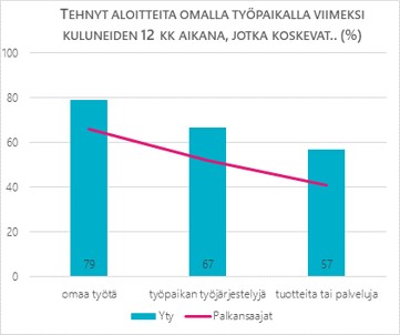 Kyselyn vastausten perusteella YTYn jäsenet vaikuttavat olevan myös uuden aktiivisia luojia. Vastaajista 79 % oli tehnyt omaa työtään koskevia aloitteita viimeisen 12 kuukauden aikana, 67 % aloitteita, jotka liittyivät työpaikan työjärjestelyihin ja 57 % tuotteisiin tai palveluihin kytkeytyviä aloitteita. Osuudet ovat korkeammalla tasolla kuin suomalaisilla palkansaajilla.