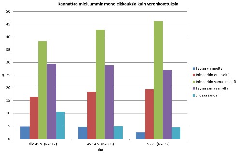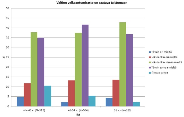 Kysymykseen ”oletko valmis maksamaan enemmän ansiotuloveroa” 63 prosenttia ilmoitti olevansa täysin tai jokseenkin eri mieltä. Vastaus muistuttaa kysymystä kahden vuoden takaa, missä 67 prosenttia vastaajista oli sitä mieltä, että he maksavat mielestään liikaa veroja. Kun vastaajat jaettiin kolmeen ikäryhmään, huomattiin että perinteisen talouskurin vahvimmat kannattajat löytyivät ikäryhmästä 45–54-vuotiaat.